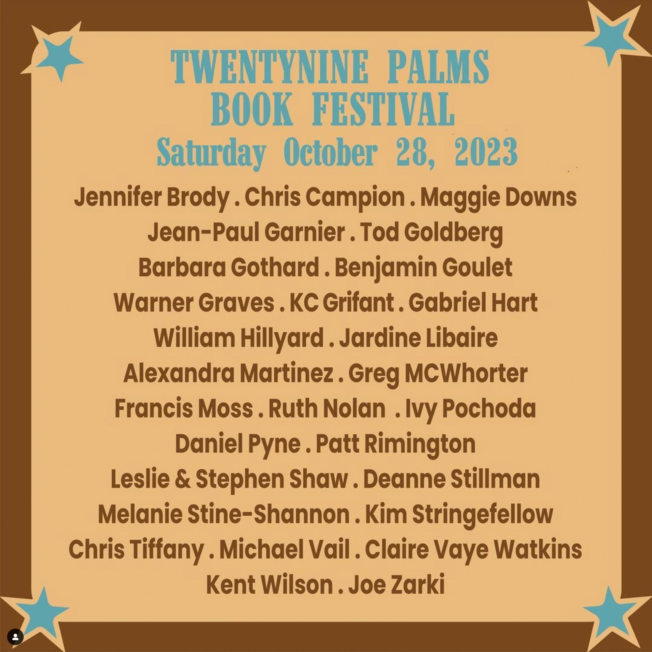 Join Kim Stringfellow and other desert authors for the first edition of the Twentynine Palms Book Festival. Saturday, Oct 28, 11 a.m. for the “Where the Hell is 29 Palms?” session moderated by desert author Ruth Nolan. Secure your seat on Eventbrite. Detailed program on 29Pbf.com