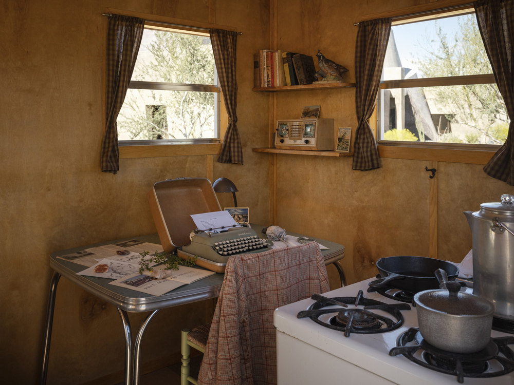 Los Angeles-based arts writer/critic Jori Finkel previewed Desert X21 for the New York Times on Friday, March 12, 2021. Her preview features Jackrabbit Homestead, a 112-square-foot Small Tract homesteader cabin inspired by the writings of Catherine Venn (Peterson) who wrote a six-part series detailing her homesteading experience for Desert Magazine throughout 1950—when this highly popular “baby homestead” movement was just burgeoning. Venn’s original homestead was located in Section 36 of Cahuilla Hills off Highway 74 near the exclusive Bighorn Golf Club above Palm Desert, California.